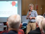 Daarna was het podium voor Wim Venhuis om het Zelfregienetwerk voor te stellen. Hij besprak verschillende ervaringen van mensen met lotgenotencontact en benadrukte de meerwaarde hiervan. Aansluitend deelde Wim zijn persoonlijk verhaal en wat lotgenotencontact voor hem heeft betekend. Datzelfde deden zes ervaringskundigen groepsgewijs. De aanwezigen kregen aan de hand van deze persoonlijke ervaringen een goede indruk van het belang van lotgenotencontact bij allerlei belangrijke levensonderwerpen. Ook hoorden ze wat de inzet van ervaringsdeskundigen kan betekenen bij het behouden en vergroten van de zelfredzaamheid, zelfstandigheid en het welzijn van burgers.